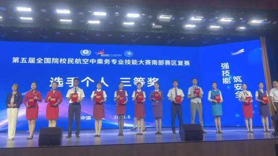 近日,2025年第五届全国院校民航空中乘务专业技能大赛南部赛区复赛圆满落幕。经过为期三天的激烈角逐,绵飞院参赛队伍凭借出色表现,荣获团体二等奖及多个个人奖项。其中,王帅鑫获个人一等奖,郑雨欣、郭浩林获个人二等奖,韦佳雪、茅雨菲获个人三等奖,六名参赛学子全部晋级全国总决赛。