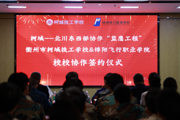 2025年11月13日下午,柯城—北川东西部协作“蓝鹰工程”校校协作签约仪式在绵阳飞行职业学院行政楼417会议室隆重举行,正式见证浙江衢州市柯城技工学校与绵阳飞行职业学院开启深度合作新征程。