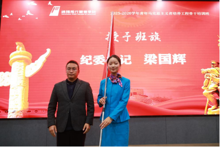 绵阳飞行职业学院党校纪委书记梁国辉为培训班授予班旗,象征着责任与使命的传递。