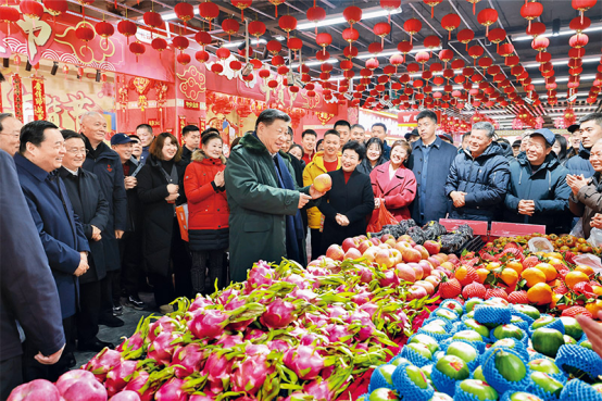 2025年1月22日至24日,中共中央总书记、国家主席、中央军委主席习近平冒着严寒来到辽宁,看望慰问基层干部群众。这是23日上午,习近平在沈阳大东副食品商场考察时,同店主和顾客亲切交流。