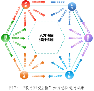 1.六方协同办学模式创新。突破传统“政行企校”四方或“政校企”三方协同局限,将集团与园区纳入协同主体,形成六方协同模式,实现行业“出题”、校企“共答”、政府“监考”、产业“阅卷”、集团“保障”的办学闭环。