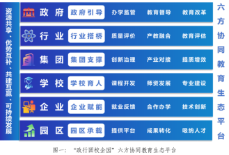 1.明晰六方职能。政府为“方向舵”,负责政策支持与主导实施,推动人才培养与区域发展同频;行业为“连接器”,衔接产业与教育、制定岗位标准,解决“供需对接”;集团为“支撑柱”,统筹教育与产业资源,保障资源供给;学校为“产能核”,聚焦人才培养与知识创新,输出高技能人才;企业为“转化器”,提供实践场景与就业岗位,转化人才与技术价值;园区为“承载地”,整合产业资源,促进校企一体发展。